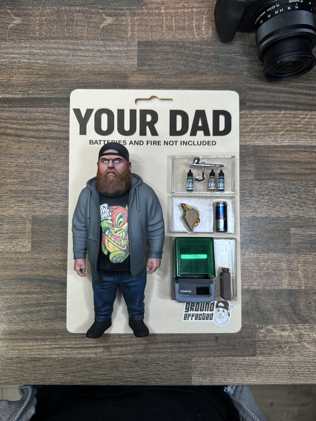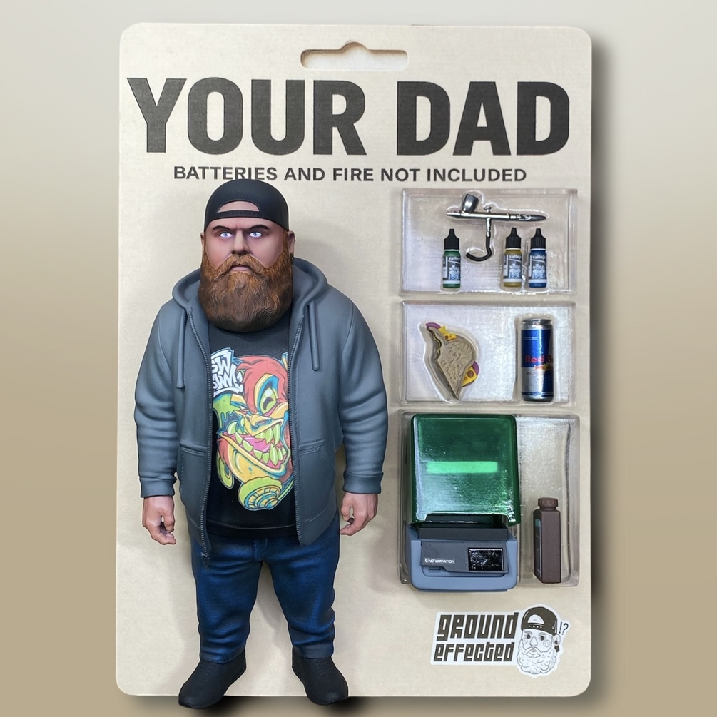 - 🧢 “Your Dad” figure body w/ detailed hoodie, beard, and backwards cap energy
